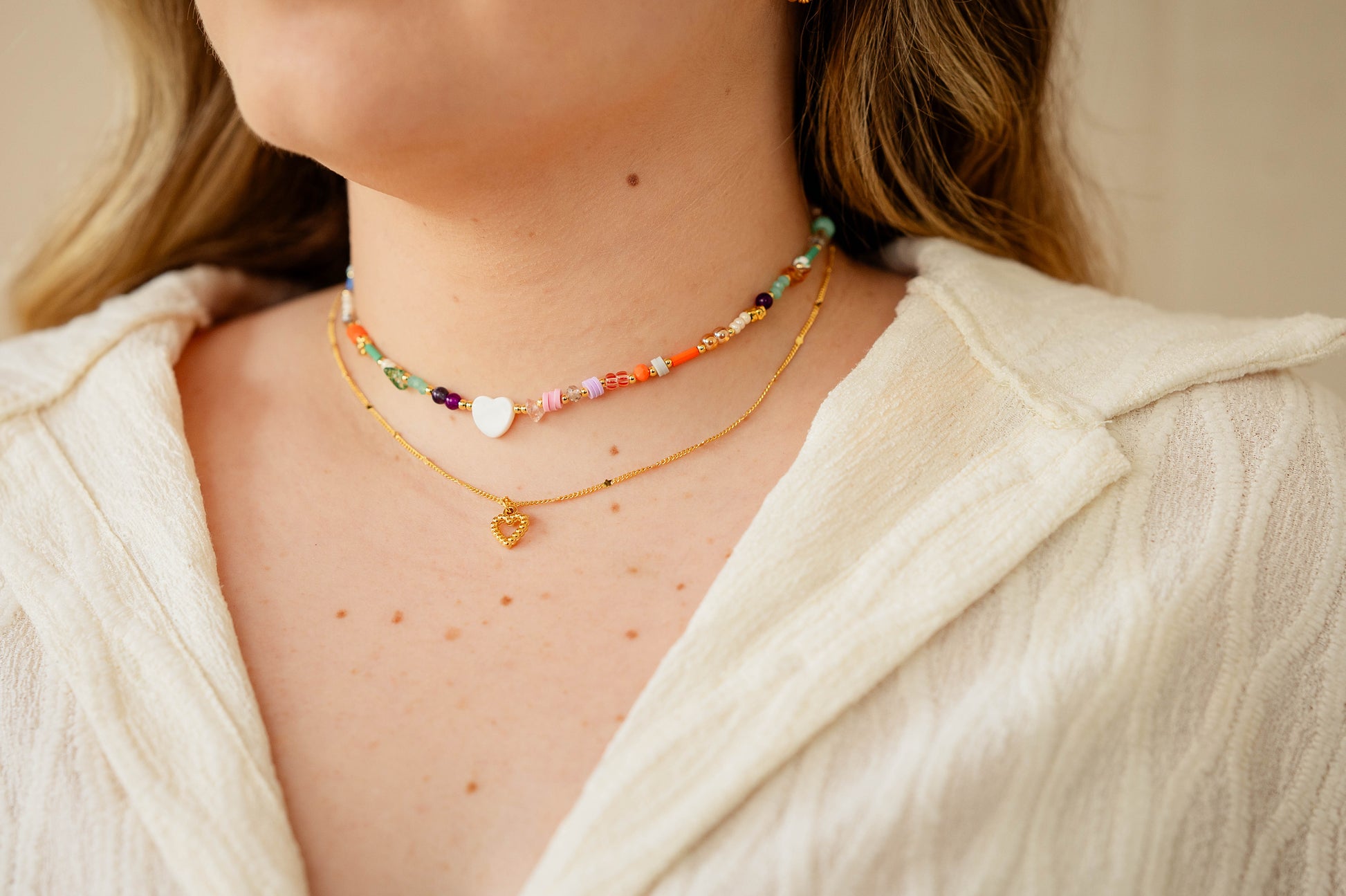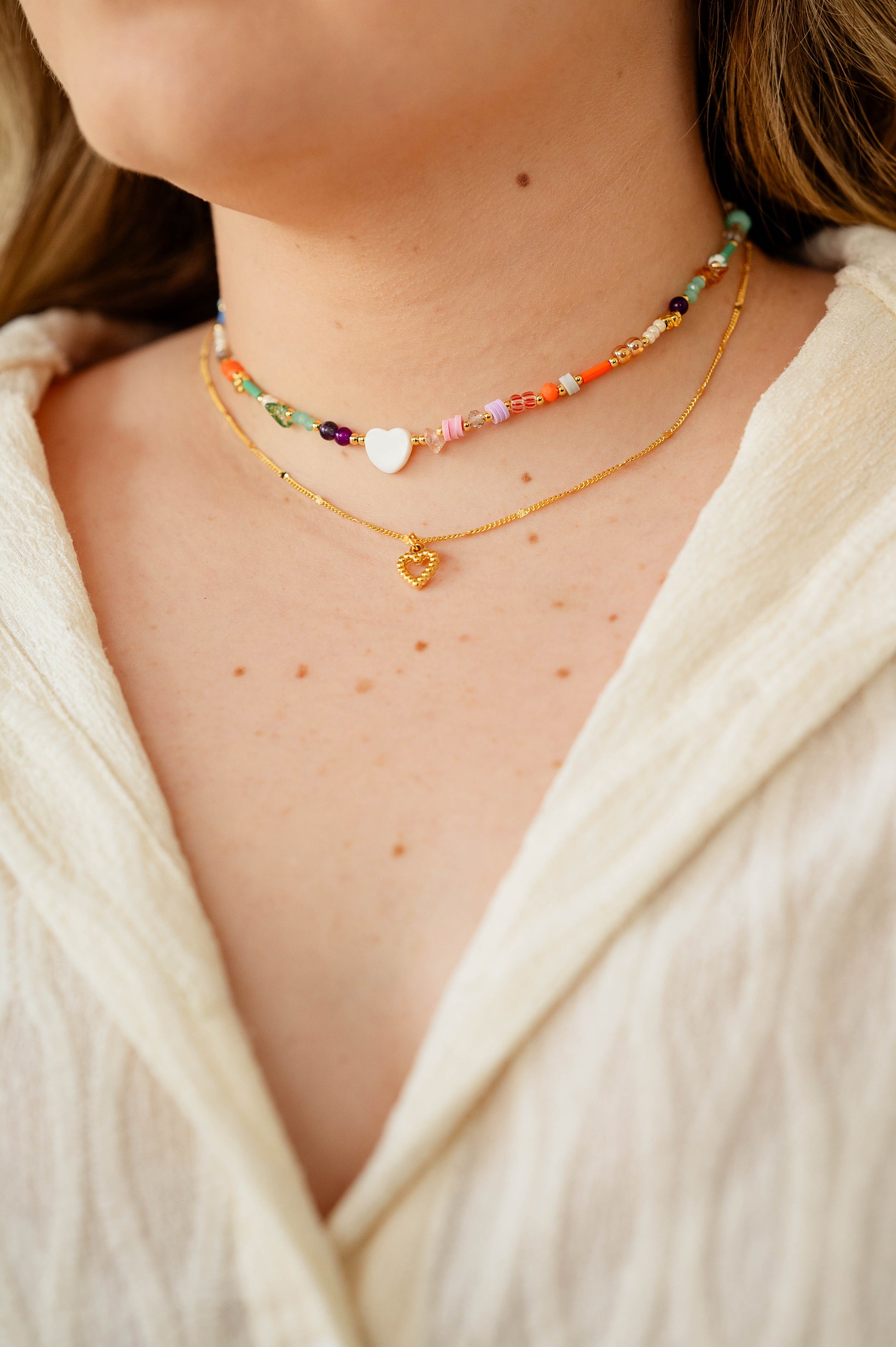 Este set combina la cadena de mini estrellas con un dije de corazón y un collar de piedras naturales, creando un balance perfecto entre lo minimalista y lo vibrante.