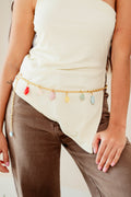 El Cinturón Costa Dorada es una pieza elegante con dijes marinos como pez, caracol y conchas, diseñados en tonos dorados que evocan la magia del verano. Perfecto para elevar vestidos, faldas o jeans con un toque sofisticado y playero. Ligero, versátil y lleno de brillo.