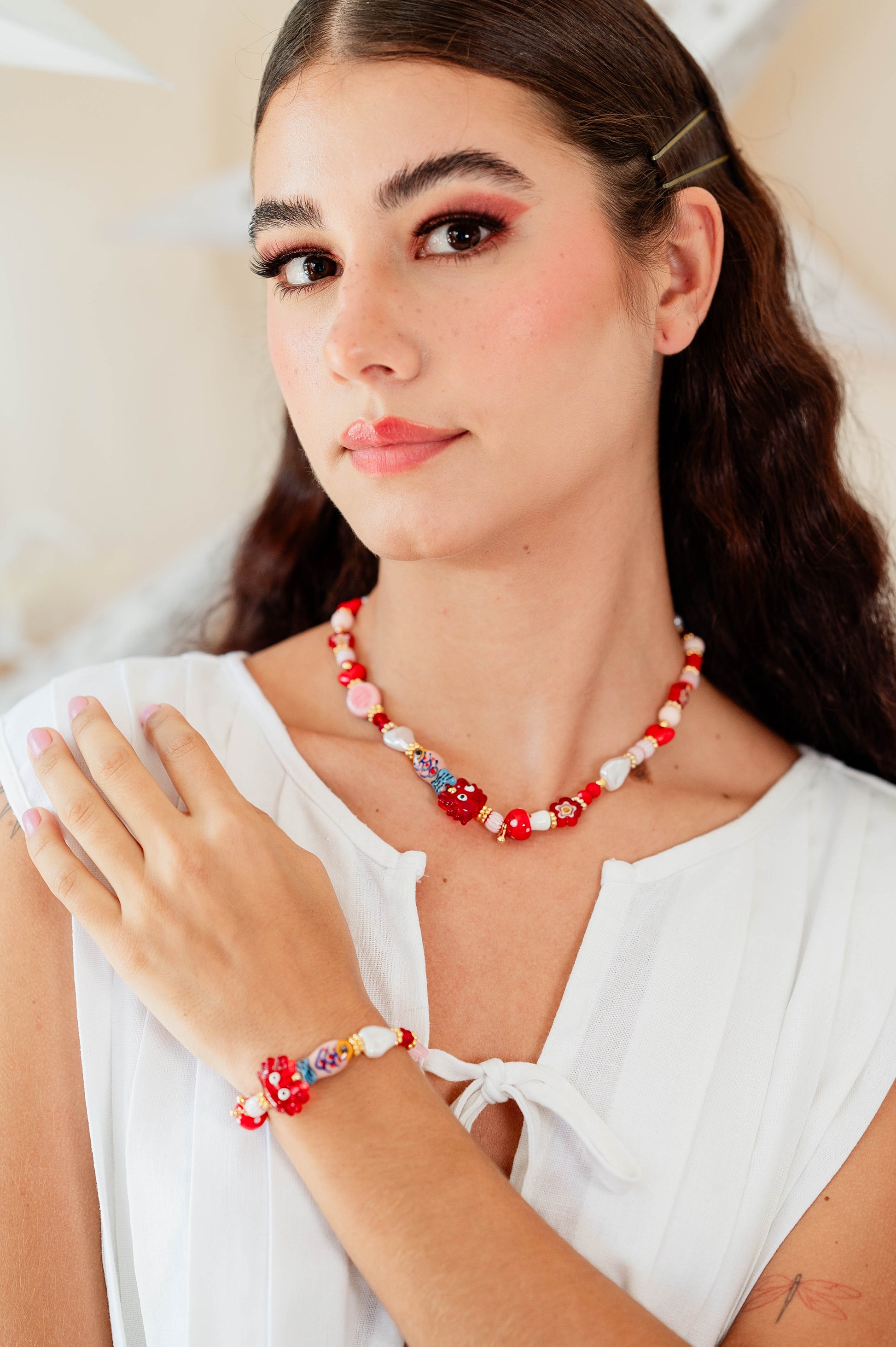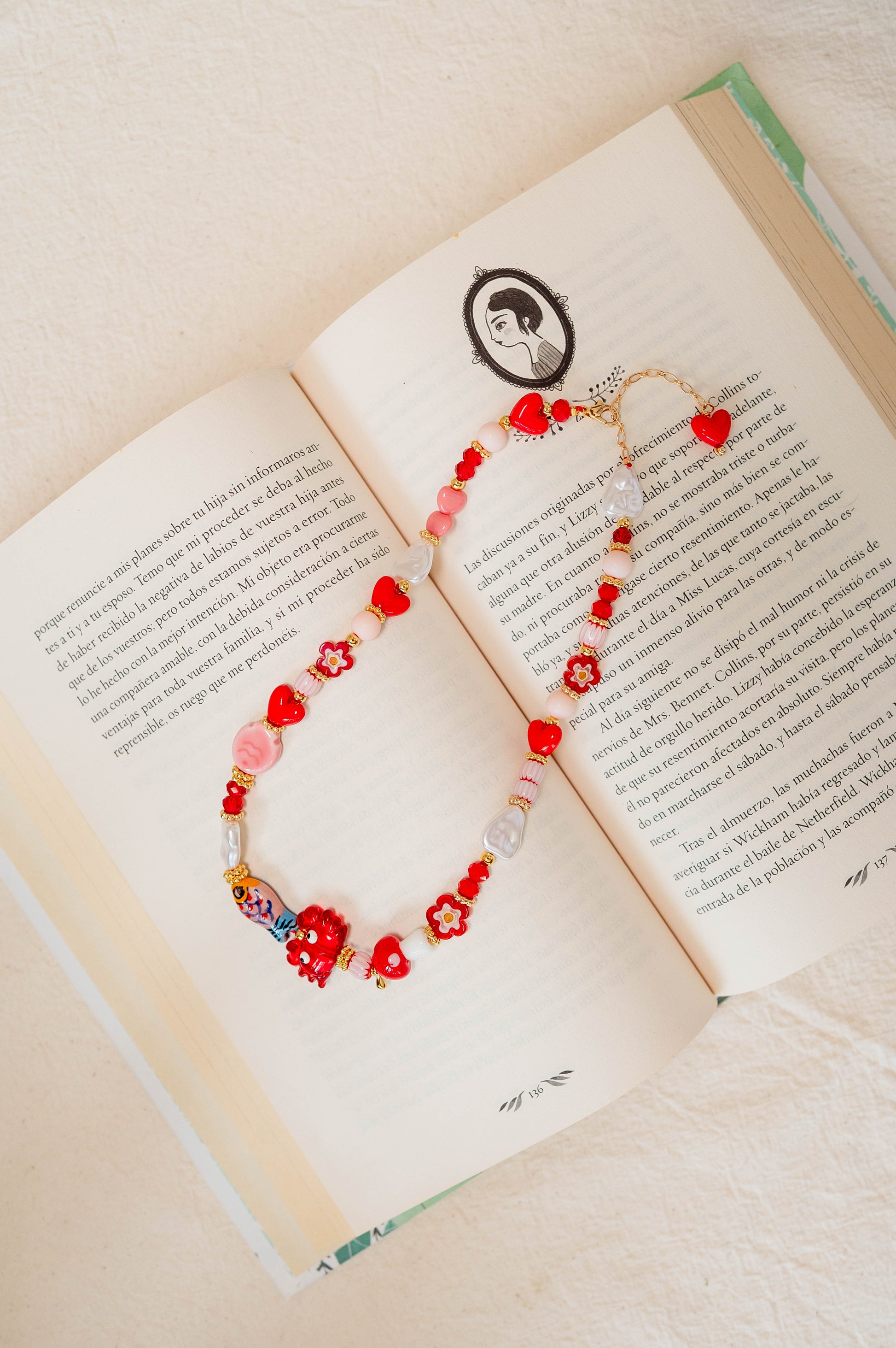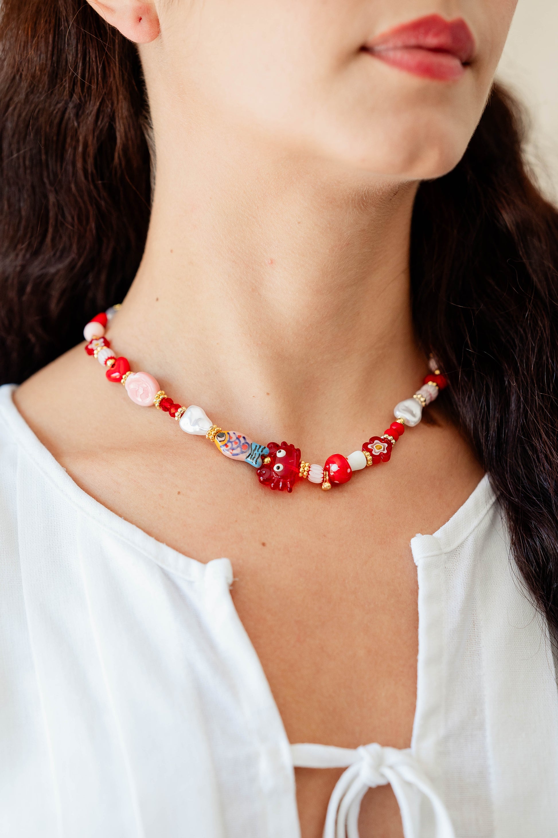 El Collar Marea Roja combina el encanto del mar con un toque vibrante y apasionado. Sus detalles en tonos rojos y elementos inspirados en el océano crean una pieza única, moderna y llena de energía. Perfecto para elevar cualquier look con color, estilo y la esencia artesanal de Lolita.