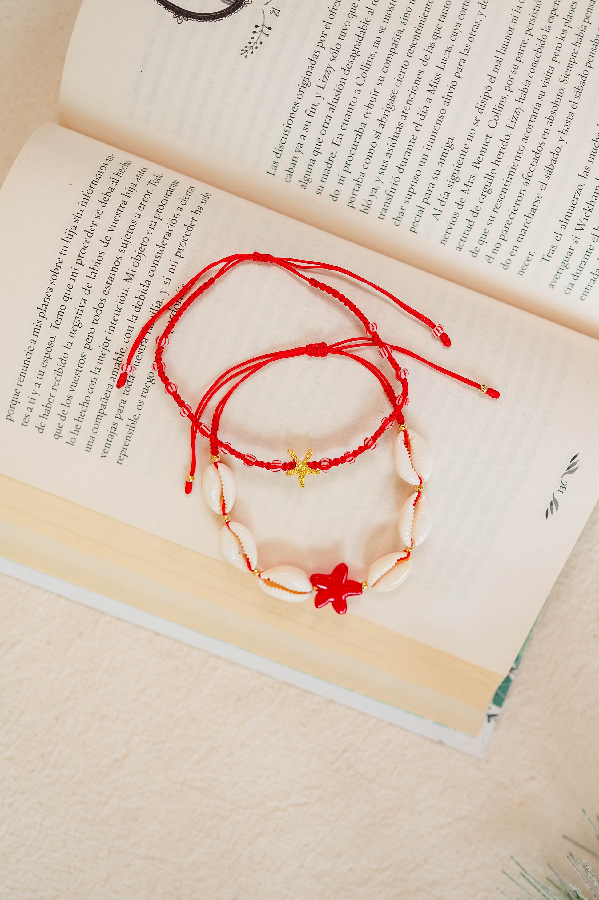 Un accesorio vibrante y lleno de energía. Su diseño en tono rojo intenso se realza con una delicada estrella de mar a juego , evocando fuerza, pasión y frescura marina. Perfecta para completar looks de verano , playeros o dar un toque llamativo a tu estilo diario.